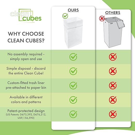 - ✅【VALUE 3-PACK】Includes 3 Clean Cubes per package — each bin comes with 3 custom-fitted trash liners. 30-gallon capacity (17” x 14” x 30”).