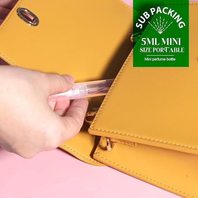 - Convenience to carry and travel: 5ml mini spray bottle is so compact and portable, suitable as travel spray bottle and daily carry out. 5ml spray travel bottles easily fit in your purse or pocket, handbag, makeup bag. Refillable perfume bottle travel is ideal as perfume spray bottle, cologne travel bottle. Suitable for dispensing perfumes, colognes, essential oils, toners, etc. When you're stuck on which perfume to take out, why not take them all with you in small 5ml spray bottles. Mini size doesn't take up much space