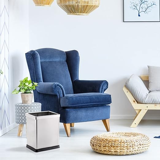 - Humanized Design: Our stainless steel office wastebasket is designed with a wide touch-free open mouth so you don't have to push a pedal or touch a lid to throw anything away. The non-skid base has a rubber pad that is gentle on floors and keeps the can steady.