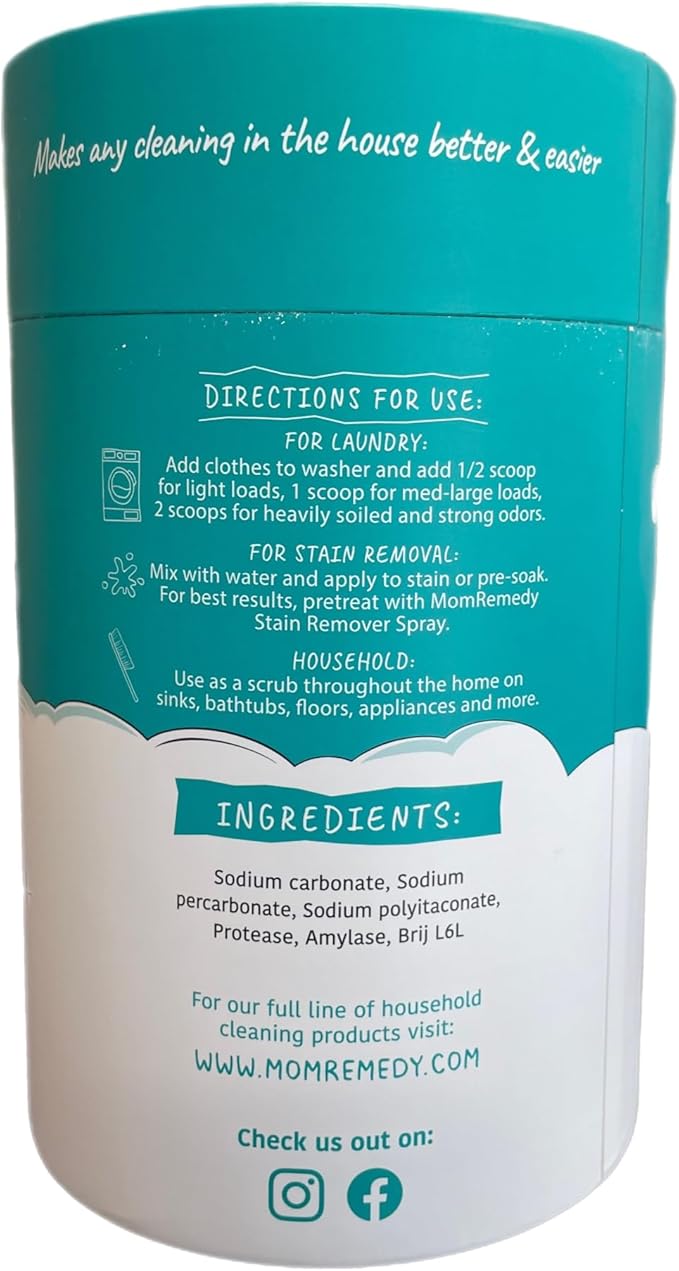 Laundry Booster and Stain Remover Scrub, MomRemedy Oxygen Whitener, Whiten Whites and Brighten Colors, Remove Stains, Household Cleaning Scrub, Chlorine Bleach Free