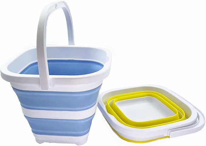 SAMMART Collapsible Rectangular Cleaning Bucket 5L (1.3 Gallon)- Foldable Camping Beach Sand Water Pot Pail- Portable Space Saving Tub for Household, Outdoor Car Washing (Baby Blue + Lemon (Set of 2))