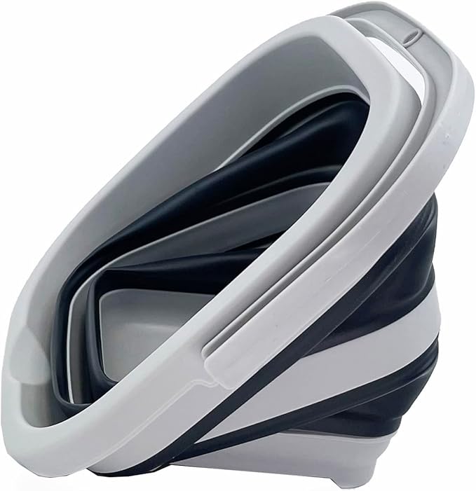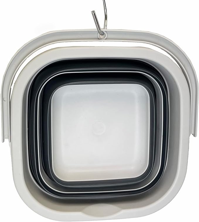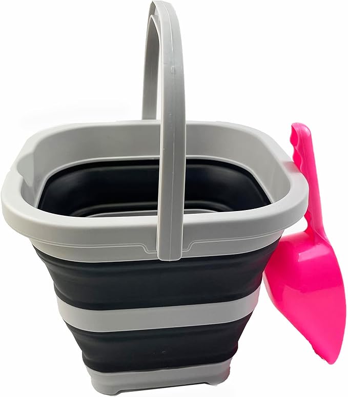 SAMMART Collapsible Rectangular Cleaning Bucket 5L (1.3 Gallon)- Foldable Camping Beach Sand Water Pot Pail- Portable Space Saving Tub for Household, Outdoor Car Washing(Grey/Charcoal Black)