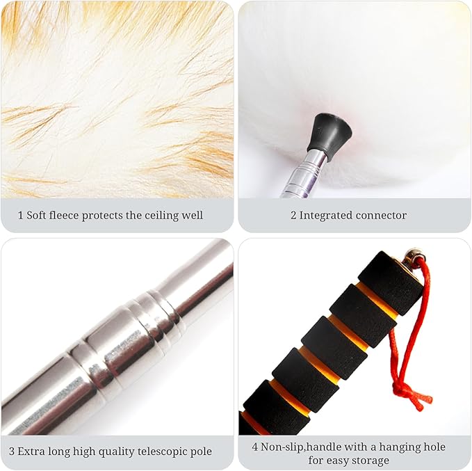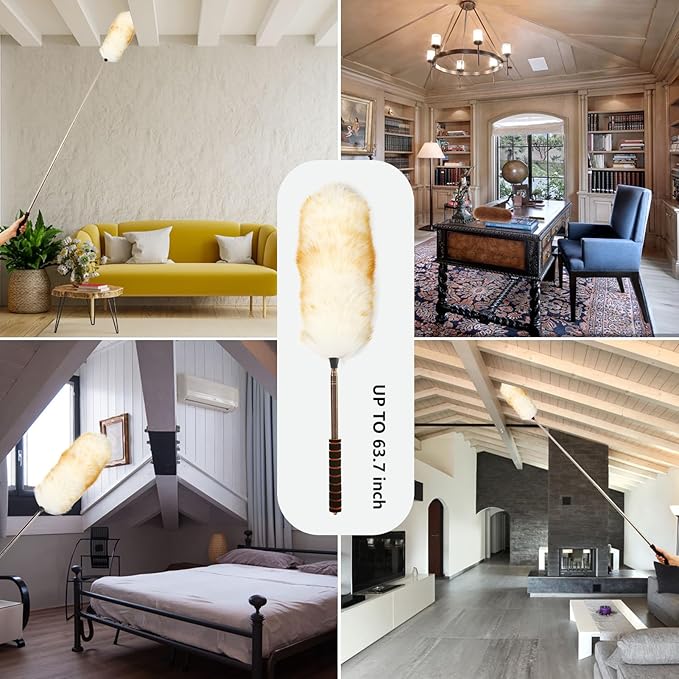 - ❤️PRODUCT FEATURES: Our wool duster with non-slip handle is high quality and durable. The size can be extended from 26 inches to 65 inches. It can be used to clean high objects such as roofs, and it is easy to store and save space. The soft and fluffy lambs wool is anti-static, which can clean item without any other additional chemicals, so that it can protect your item.