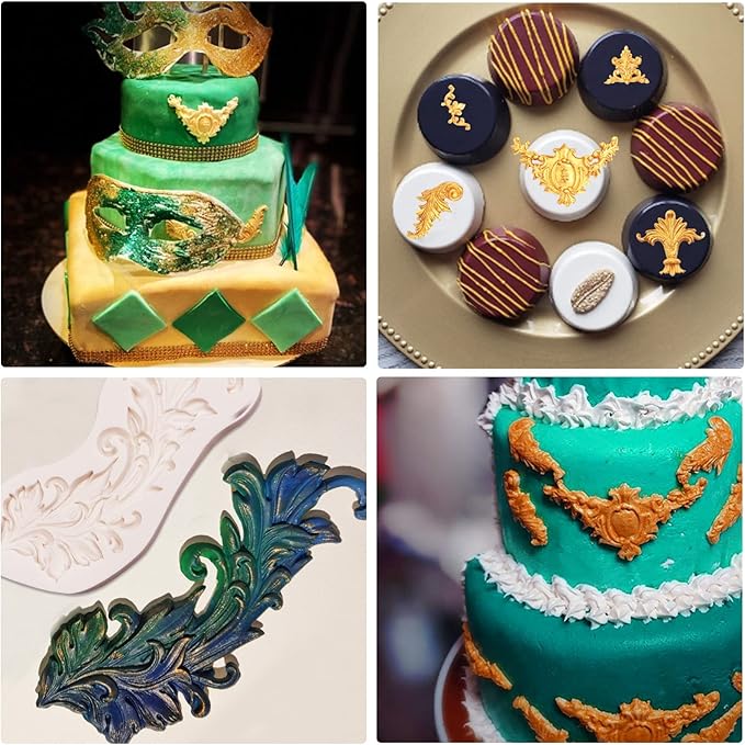 - [ BAROQUE RELIEF SILICONE MOLDS ]: In the package you can get 4 pcs of baroque silicone molds, including feather relief shape. Perfect size for cake decoration.
