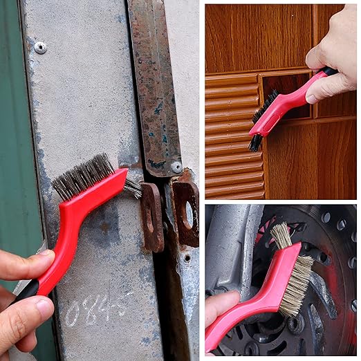 - Wide Applications: Each brush in our set has different purposes. You can use them to clean your gas stove, sink, iron pan, faucet, floorgap, shower door tracks, stove top, tubs, sinks, grout, small engine parts... Metal and Brass brushes also are perfect for scrubbing and sanding down wood or rough surfaces before painting!