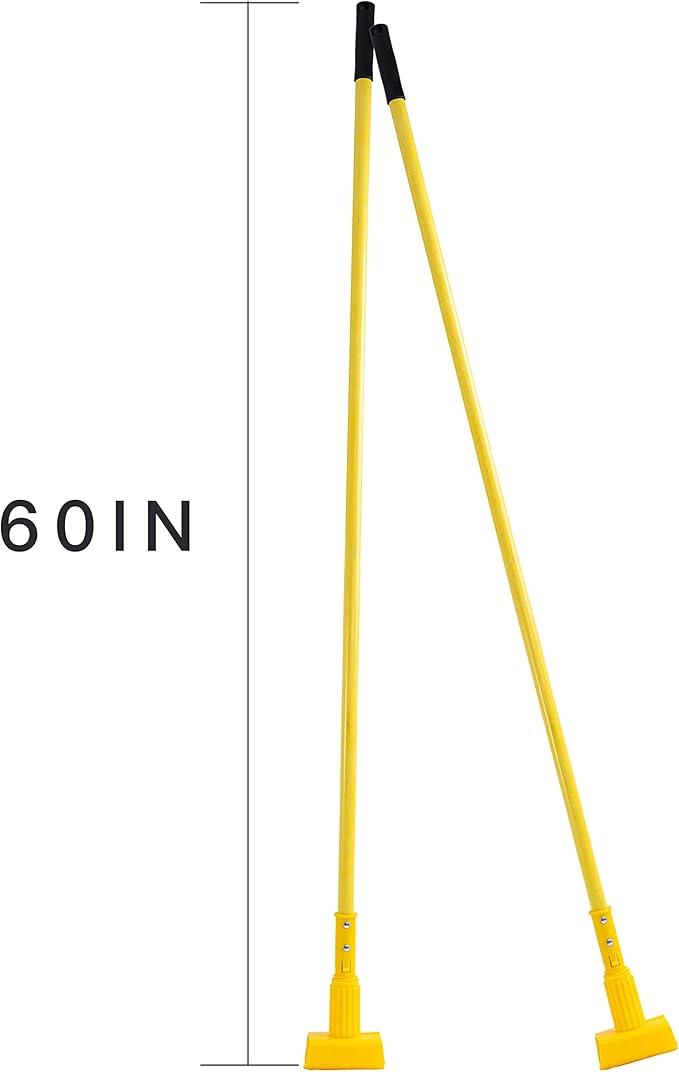 - Yellow Clamp-style Handle - industrial grade mop handles makes removing and replacing mops easily and efficiently, the jaw clamp and iron metal handle will firmly hold mops to help you work effectively.