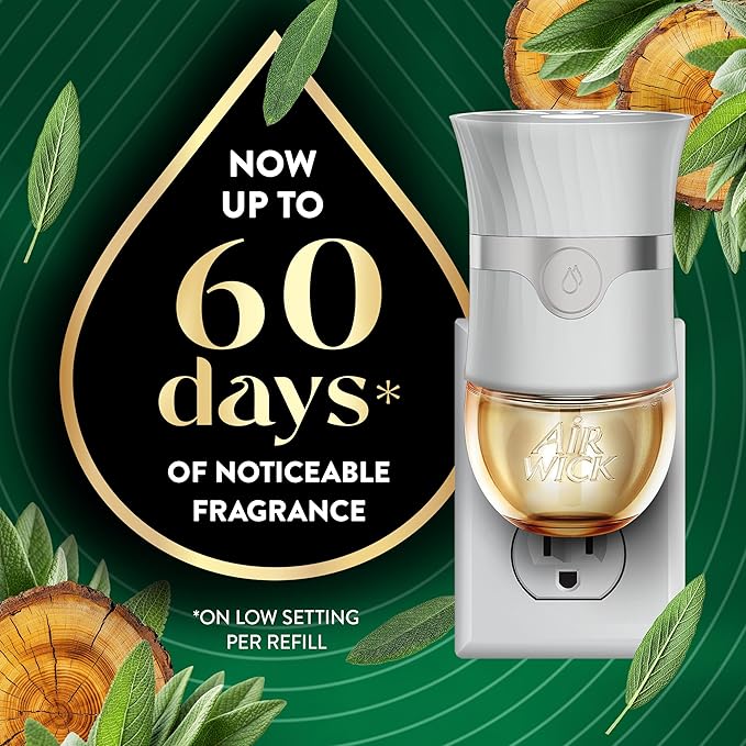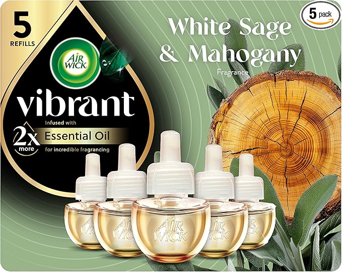 Air Wick Plug in Scented Oil Refill, 5ct, White Sage & Mahogany, Air Freshener, Essential Oils