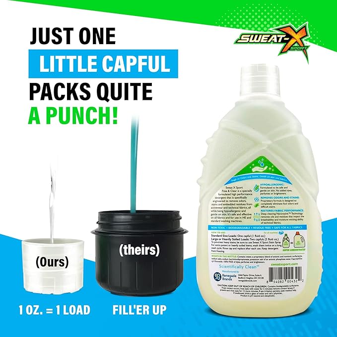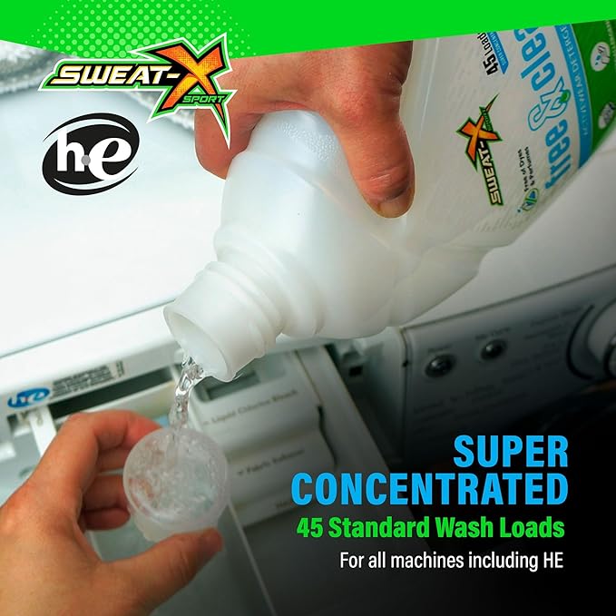 Sweat X Free & Clear Activewear Laundry Detergent – Certified Asthma & Allergy Friendly® – Hypoallergenic – Removes Toughest Stains & Odors – High-Performance Sports Wash – 45 Loads/Bottle – 4 Pack
