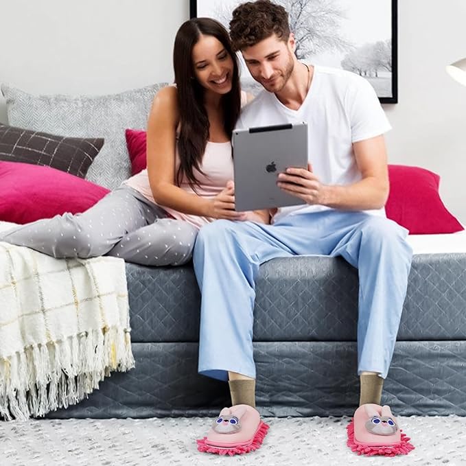 Liitrton Mop Slippers Cartoon Mop Shoes, Washable Microfiber Slippers for Floor Cleaning, Detachable Mopping Slippers for Women Home Floor Cleaning Tools (Pink Rabbit, Women 7-9/Men 5-7)