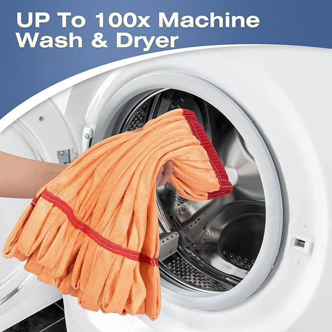 Matthew Cleaning Microfiber Tube Mop(Meduim,Orange,12Pack) Heavy Duty Mop Head Replacement,Excellent Absorbency,Premium launderability,Reusable,Loop end for Home,Commercial and Industrial Use