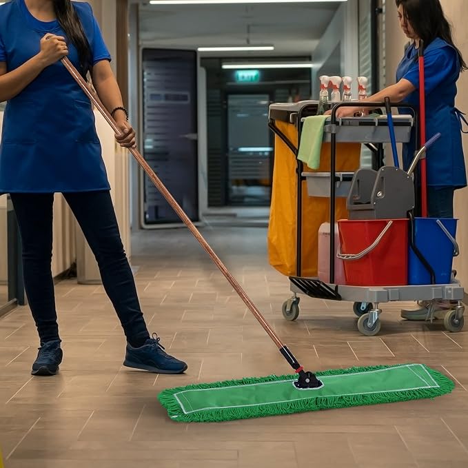 Matthew Cleaning 36'' Industrial Strength Cotton Dust Mop Refill Washable Replacement Heads for Residential & Commercial Use Fit Standard Dust Mop Frames, Hardwood, Concrete Floors Green 6 Pack