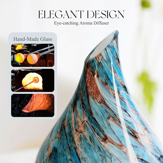- UNIQUE ART DECORATIVE DESIGN - Our 280ml glass essential oil diffuser has an elegant starry pattern glass cover and wood grain decorative base. It is very suitable for your bedroom, living room, children's room, study room, office, and yoga room.