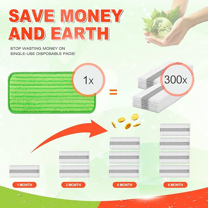- Saving Your Money- Reusable mop pads are machine washable, can be used for hundreds of times. Simply place the dirty pads in the washing machine to restore clean. Easy to hang dry with convenient hooks. Our wetjet pads are more cost effective than disposable floor mop pads, can be used as heavy duty mopping pad refills. No odor as a good partner for cleaning floors, giving you a shiny and safe home