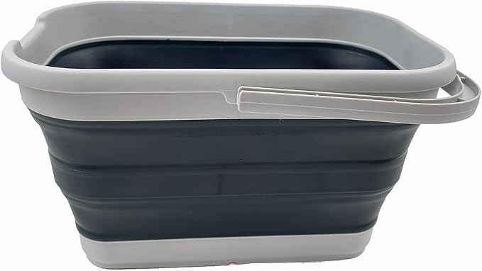 SAMMART 12L (3.1 Gallon) Collapsible Rectangular Handy Basket/Bucket/Multiuse Foldable Water Pail for Camping, Fishing (Slate Grey (Set of 2))