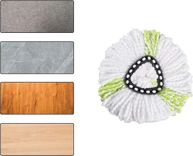 - ★Multipurpose: Our microfiber spin mop head uses the power of microfiber to give your floors a deep clean.Perfet use for the smooth surface floor, such as wooden floors, ceramic tile, laminate floors, marble floors and other sealed hard floors. Also can wash the car.