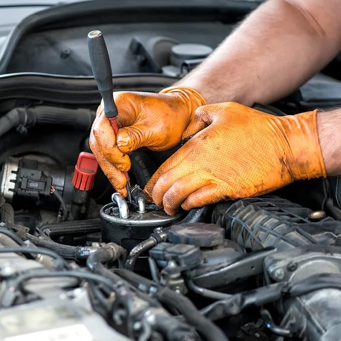 • HIGHLY VISIBLE BOLD COLOR: The orange design of nitrile gloves features high- visibility, which improves your safety day and night for the service in auto repair, car maintenance, painting, and household plumbing.