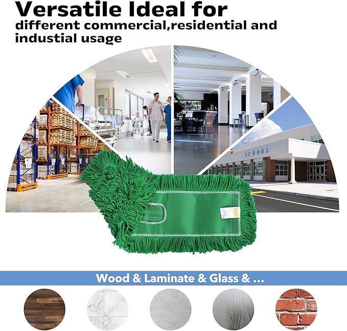 - The professional grade loop end dust mop blended yarn produces an exceptional result when picking up dirt, dust, pet hair and debris from even the most stubborn places. It also has a unique twist on the end that does not cause snags on anything