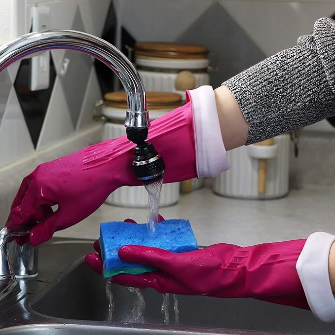 - DURABLE & REUSABLE: These household cleaning gloves are made with a neoprene, and nitrile formula for strength and durability. Good for multiple uses, you will never be without hand protection! After use, wash outside of gloves with soap and water and let air dry. Do not put in dishwasher.