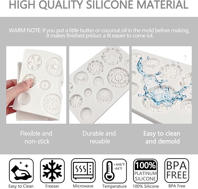 - PREMIUM MATERIAL: Embossed jewelry fondant molds are made of food grade silicone, bpa free! easy to demold and clean. suitable for temperatures ranging from -40°F to +446°F. can be safely used in microwave, oven, freezer and dishwasher.