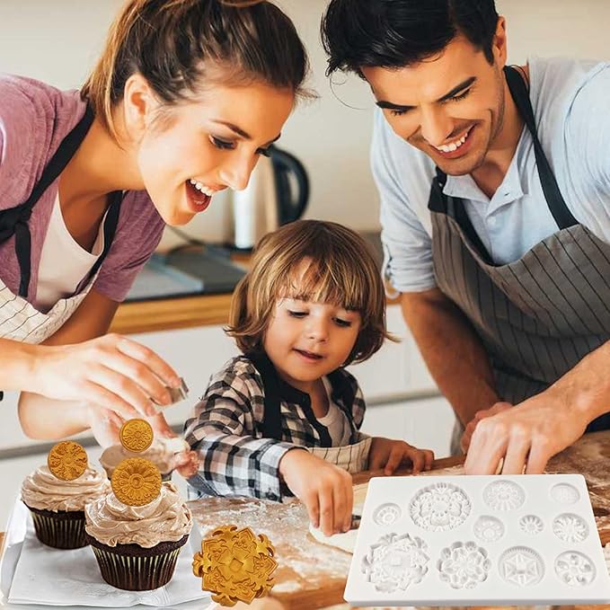 Baroque Gemstone Fondant Molds - Embossed Cupcake Decorating Molds for Wedding Dessert Setting, Sugar Craft, Cookies, Gum, Flower Paste, Marzipan, Polymer Clay, Epoxy