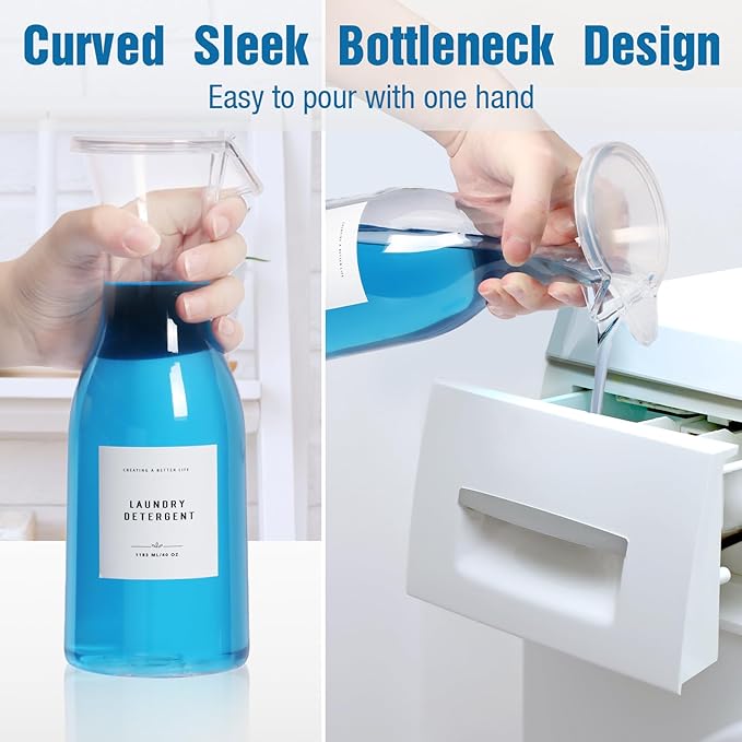 - Multi-functional Design – 40-ounce large capacity design effortlessly accommodates ample detergent. Includes 6 complimentary waterproof minimalist labels: fragrance booster beads, liquid detergent, fabric softener, borax powder, and stain remover.