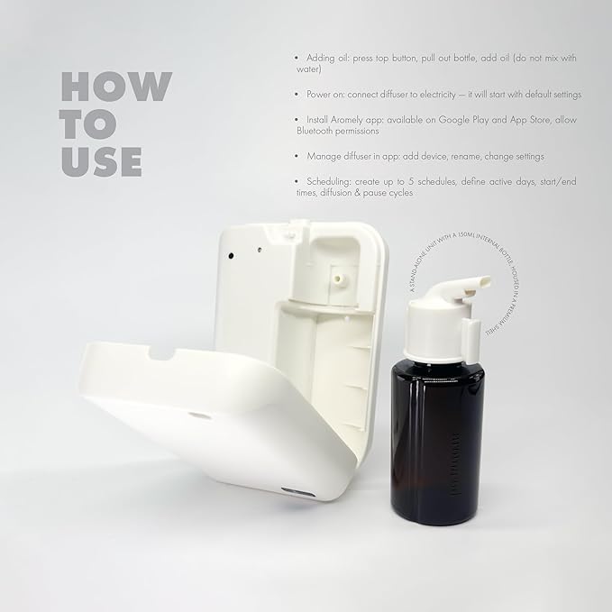 - Smart Control via Aromely Mobile App. Enjoy seamless Bluetooth control using the Aromely mobile app (iOS/Android). Easily adjust intensity, schedule automatic on/off times, and manage your experience remotely.