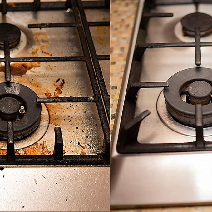 - GREAT TO USE ON: Appliances, grills, stovetops, concrete, tools, engines, fiberglass, aluminum, stainless steel and kitchen surfaces