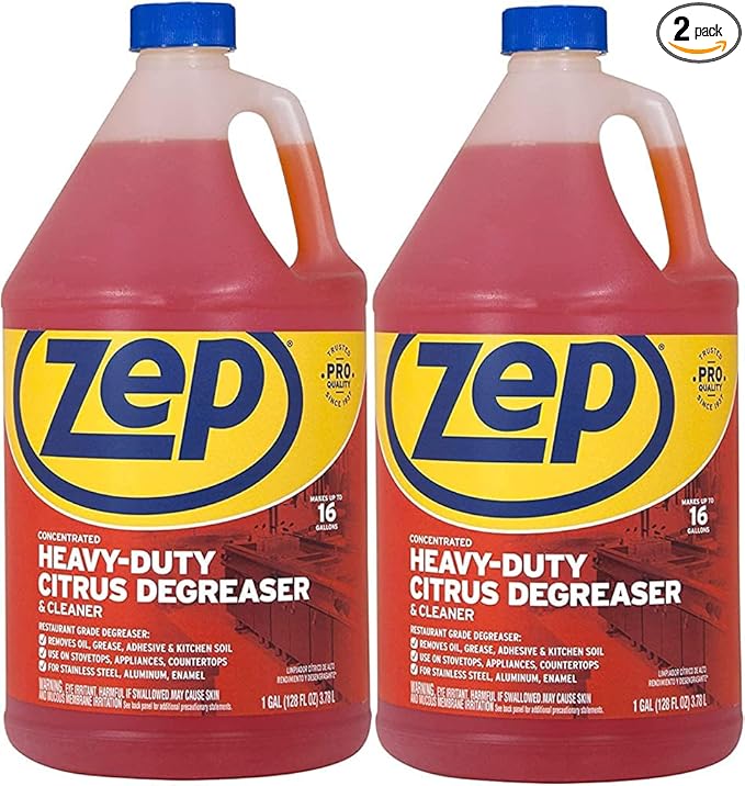 Zep Heavy-Duty Citrus Degreaser Refill - 1 Gallon (Case of 2) ZUCIT128 - Professional Strength Cleaner and Degreaser, Concentrated Pro Formula