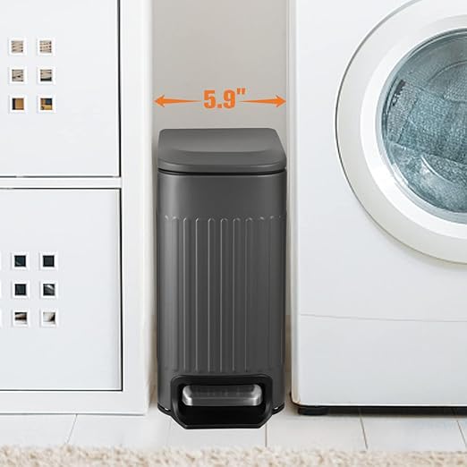 - Compact Design: Our slim trash can is narrow enough to fit into any tight space or corner. It is practical for the bathroom, living room, bedroom, and other rooms while taking up less space