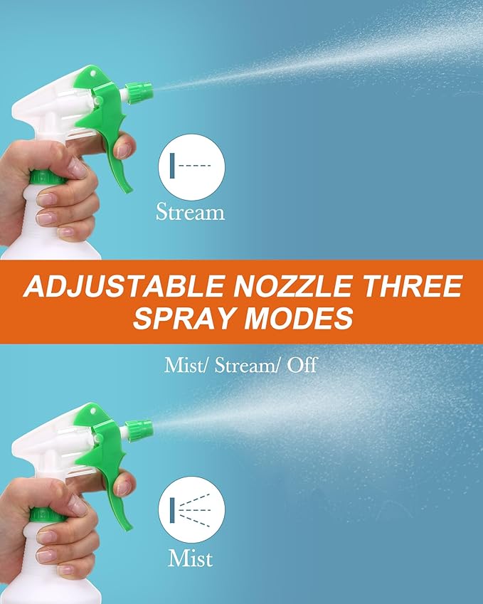 - Adjustable Nozzle: these empty spray bottles are designed with adjustable nozzle, there are three different modes, easy to rotate and use, the straw goes straight to the bottom of the bottle, avoiding wasting and spraying a drop, providing convenience to your life