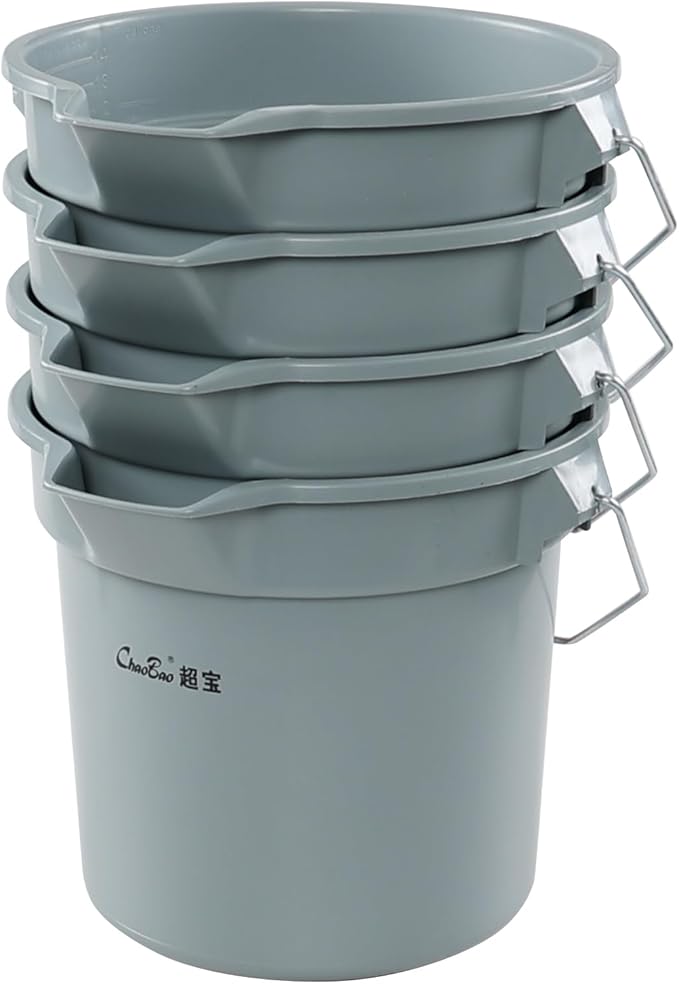 14 Quart Round Water Bucket with Grip Handle, 4 Pack Plastic Commercial Cleaning Pail, Grey
