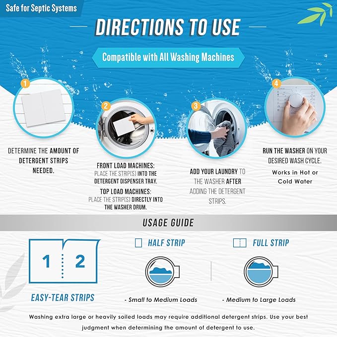 - Space Saving Design: Perfect Traveling Size Strips. Spill Free, Low impact on storage and the Earth. Compare Dehydrated Landry stips to Bulky Liquid Jugs, Tablets, or even Pods. Fast Dissolving Paper sheets have the smallest footprint.