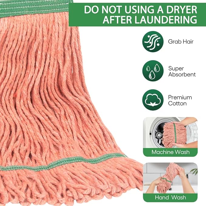 - Long-Term Usage - Washable fibers allow mop heads to be laundered giving it a longer service life. *WE DO NOT RECOMMEND USING A DRYER TO DRY THE MOP HEAD AFTER LAUNDERING. * Instead,we suggest air-drying the mop head to prevent shrinkage and maintain its shape for for long-lasting durability.