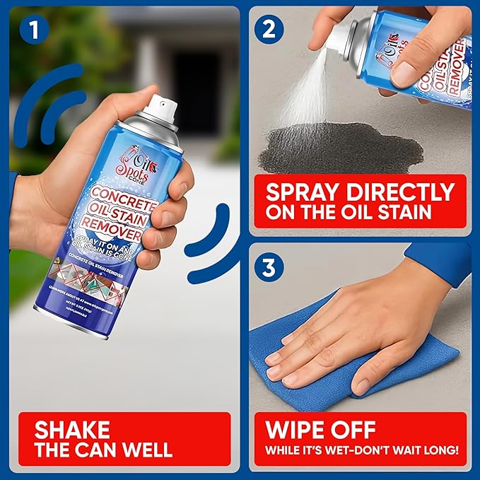 - JUST SPRAY & WIPE Forget pressure washing. This easy clean, waterless wash makes oil stain removal effortless. Spray the surface, wait 10 seconds, and wipe. That’s it. Use it as a high-performance driveway cleaner for concrete, paver cleaner, or concrete surface cleaner—perfect for stamped concrete, stones, garage floors, and more.
