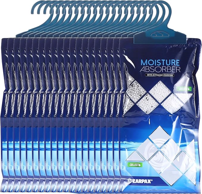 - SAFEGUARD YOUR HOME: Make excess moisture, humidity, and odors a problem of the past with ZARPAX's moisture absorber. Perfect for closets, bathrooms, and kitchens, the water absorber can also be used in boats, RVs and other recreational vehicles. Our moisture absorbers are easy to hang and can be hung conveniently from any hooks or bars or other fixtures, freeing up valuable floor space.