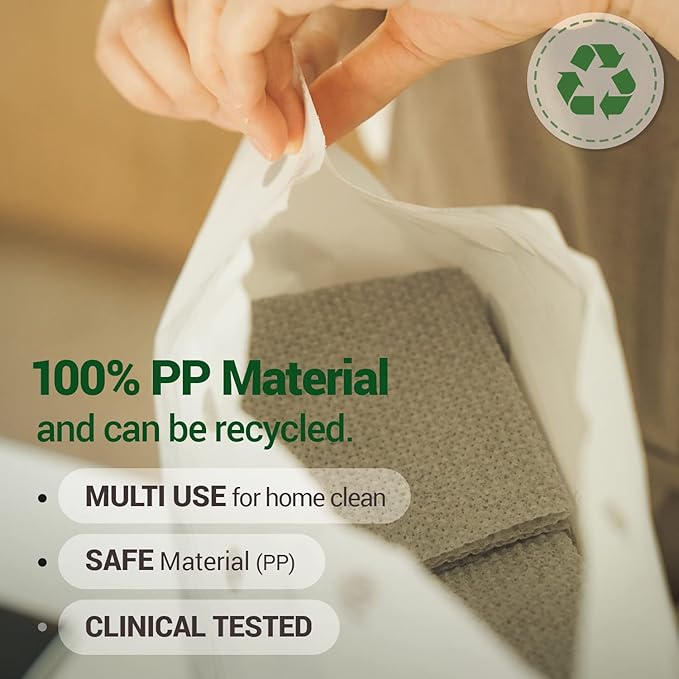 - DURABLE AND HIGH-QUALITY MATERIALS: These cleaning cloths for kitchen are made using 100% polypropylene material. The same material is used for baby products and medical products, and masks. These double-sided microfiber cleaning rags have excellent durability and power to clean cookware, cooktops, and counters.