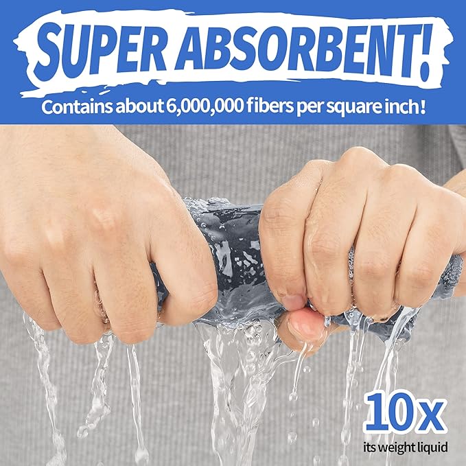 - Water Absorption up to 10X Its Weight: Microfiber gives our cleaning cloths an impressive absorbency that makes them absorb 10 times of their weight. They can absorb the biggest messes and make grease and grime disappear. Dampen a microfiber cleaning cloth with warm water to easily remove grime and make your countertop shiny.