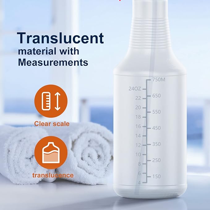 - 【DURABLE HDPE BOTTLES】 The (5 pcs, 32 Oz) strong spray bottles are made from durable HDPE plastic, BPA Free, which is chemically resistant, safe for chemical solutions like Bleach, Vinegar, Rubbing Alcohol, etc. and support long-term use. Withstands drops and won't shatter easily, is an ideal solution spray bottle.