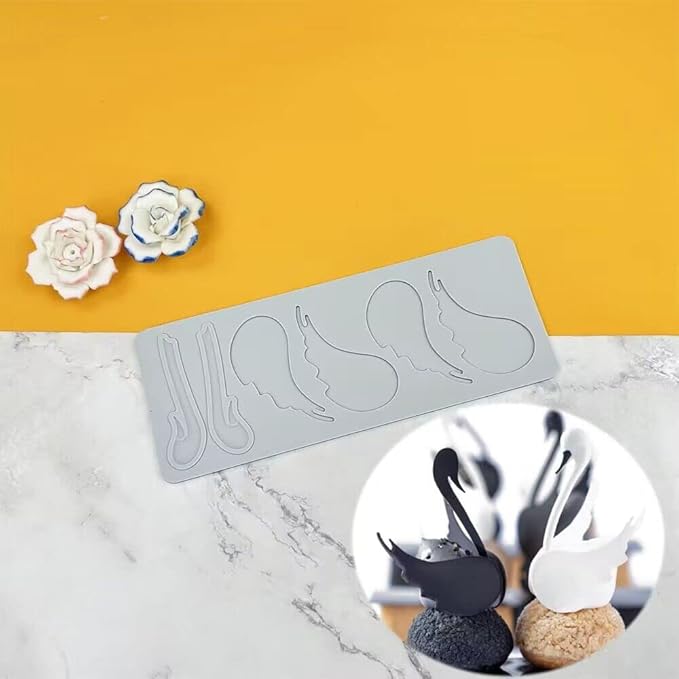 3D Hollow Leaf Fondant Lace Mold Multi Leaves Flower Candy Mold Chocolate Sugar Craft Cake Decoration Cupcake Top (K Swan_8.92 * 3.52 * 0.12inch)