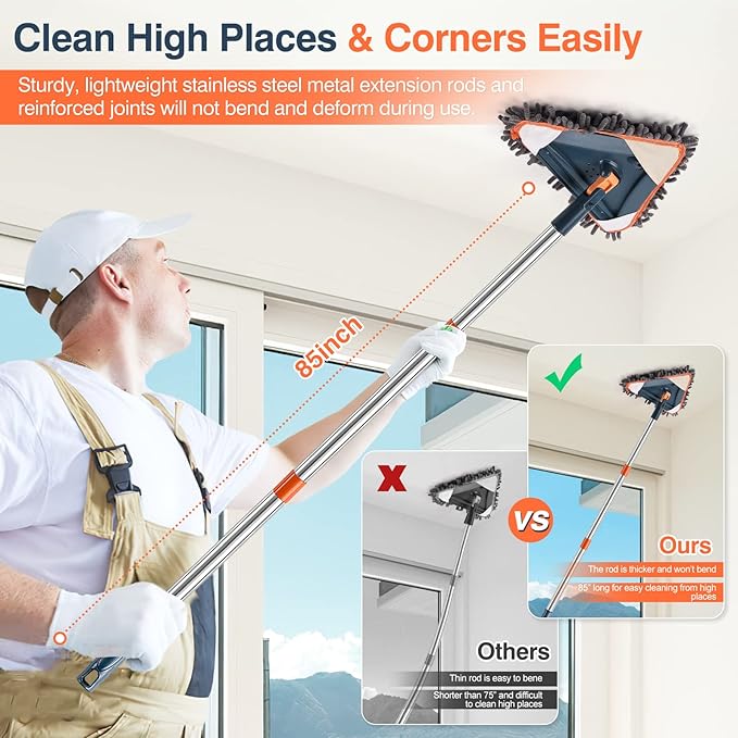 - Multipurpose Cleaning Tools: As a versatile cleaner tool, our Wall Cleaner with Long Handle can be used to clean walls, ceilings, ceiling fans, baseboards, doors, windows, shower doors, glasses, furniture, corners, cars, etc. With our versatile cleaning tools, you can easily handle a variety of cleaning tasks.