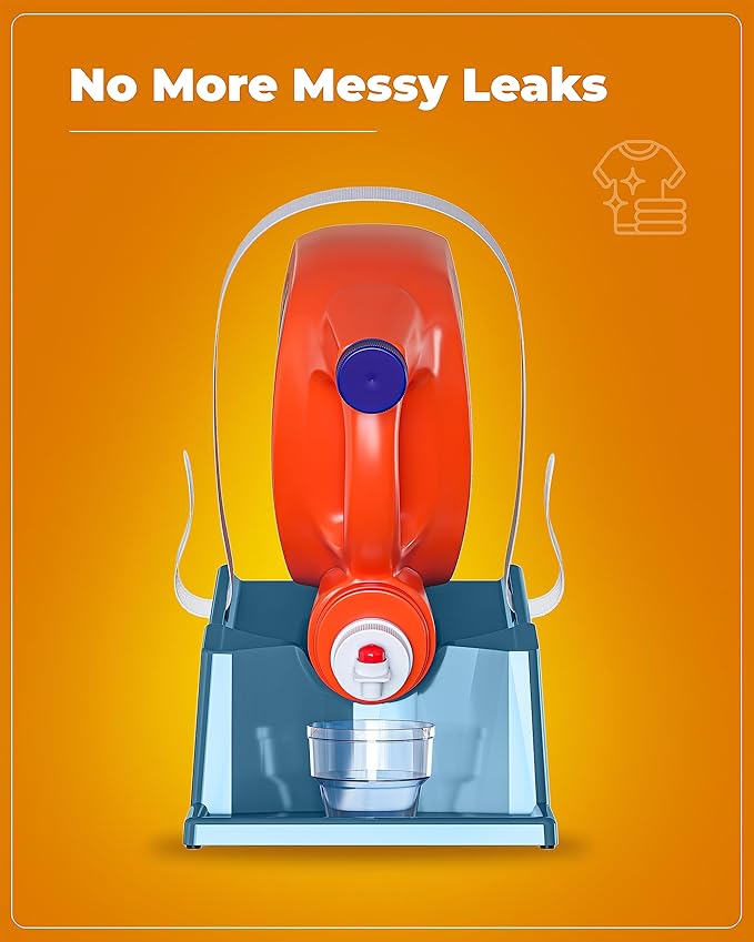 - [No more messy Shelves]: The molded edge of this laundry detergent dispenser holder, holds your measuring cup securely, preventing soap drips and messes from spilling onto your shelves or floors, keeping your laundry area clean.