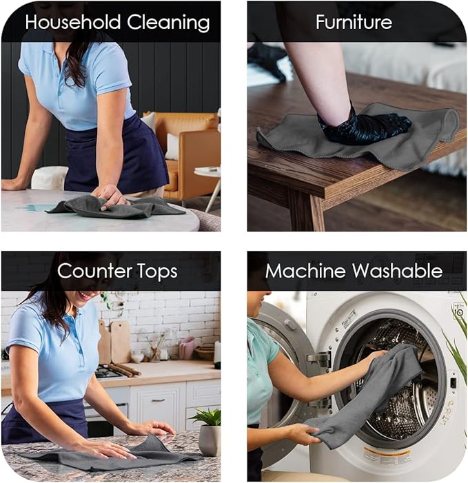 - Easy Care: Our microfiber cleaning cloths are machine washable, making maintenance easy. Just toss them into the washer and dryer, saving you time and energy. Replace paper towels with these to reuse them over and over again.