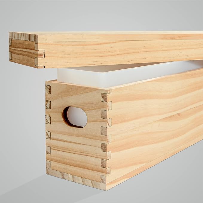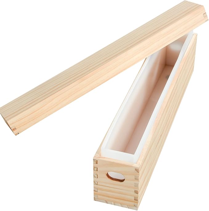 - The handle holes on both sides of the wooden box make silicone soap mold move easily, help extract the insert after the soap has hardened. The thick liner with wooden lid tend to preserve heat and allow it to slowly cool to prevent cracks from forming in the top of the soap. In addition, it prevents dust and bugs from falling in and keeps the soap free of any dirt