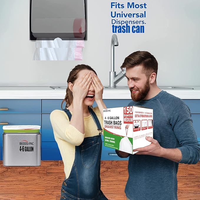 - Product Information:BEIDOU-PAC Trash Bags, 4-6 Gallon 20.6 inch x 23.6 inch x 0.71 mil, 25 bags per roll, 3 rolls, 75 bags total. Our drawstring trash can liners are designed to fit perfectly in each 4, 5, and 6 gallon capacity kitchen trash can.