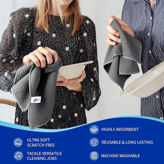 - TACKLE VERSATILE CLEANING JOBS: The waffle pattern texture enhances their cleaning ability by providing extra scrubbing power for capturing dirt, dust, and spills. Not only that, you will be impressed they are also terrific duster that removes fingertips from silverware and glasses effectively.