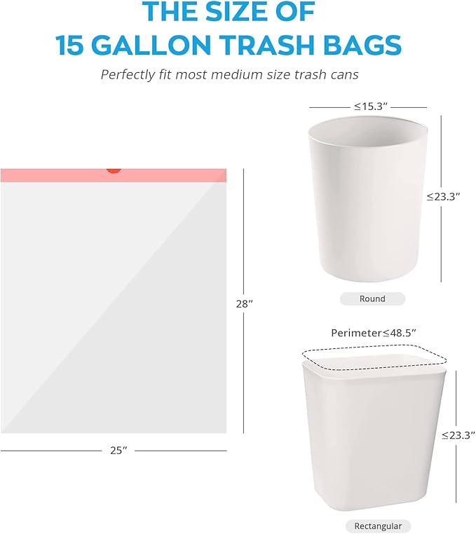 - DRAWSTRING: Drawstring design, without getting your hands dirty, perfectly fit most tall kitchen trash cans.