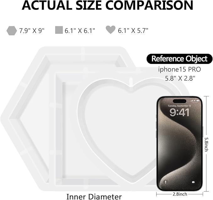 KISREL Large Resin Molds, 3 PCS Silicone Molds Kit for Resin Including Large Hexagonal and Square Heart Resin Mold, Epoxy Resin Molds for Flower Preservation Kit