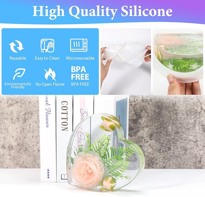 - 【Easy to use】: Keep resin molds silicone clean before use, and the resin is easy to release after curing. The molds can be cleaned with soap and water, or you can remove the residue with tape and store it away from sunlight and dust.
