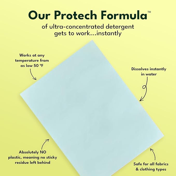 - SUDS-FREE CONVENIENCE: Tired of dealing with messy spills and suds? Our detergent sheets provide a mess-free and suds-free laundry experience. Say goodbye to measuring and the risk of spills - simply toss a sheet into the washer and let it do the work. Enjoy the convenience of a hassle-free laundry routine with our suds-free detergent sheets.