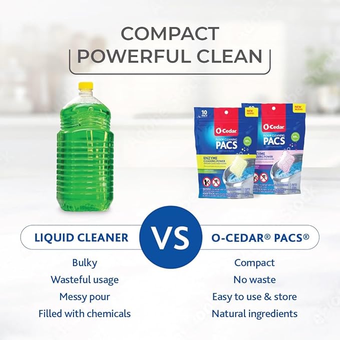 - DEEP CLEANING POWER: Concentrated O-Cedar PACS are the perfect cleaning companion to your O-Cedar mop bucket, packed with the deep cleaning power of enzymes to remove stubborn dirt and grime for a streak-free shine.